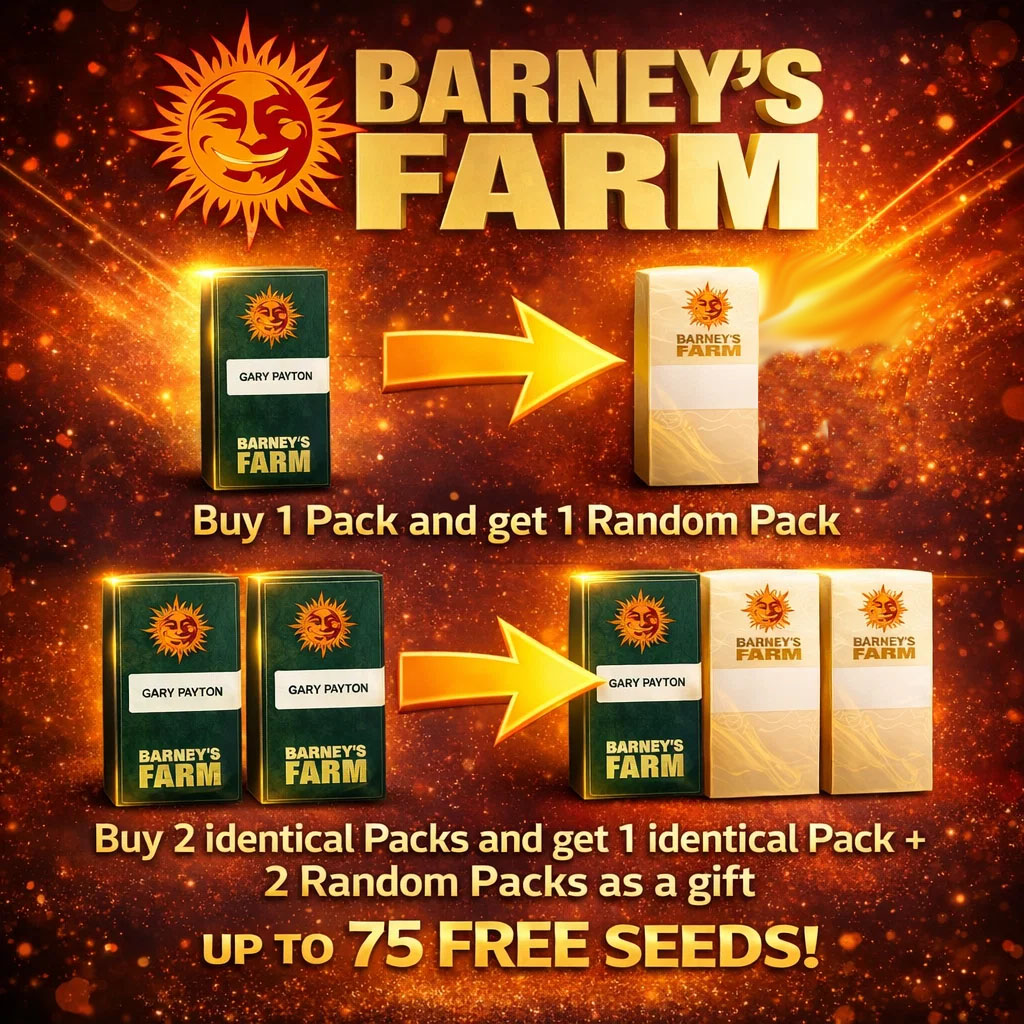 Compra 2 PACKS iguales y llévate 1 PACK igual + 2 PACKs aleatorios del mismo tipo que compres (autos o feminizadas).. Compra 1 PACK y llévate otro de la misma cantidad en semillas de variedad aleatoria del mismo tipo que compres (autos o feminizadas). Promoción válida hasta el 20 de abril.